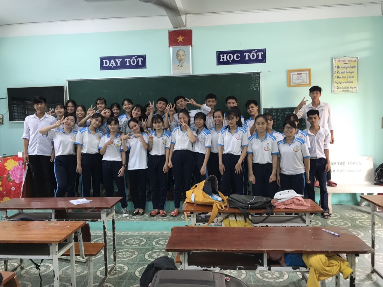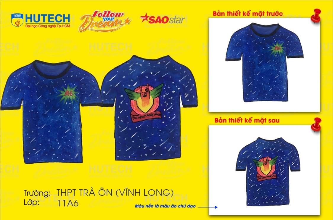 Màu sắc: Được kết hợp giữa hai màu xanh dương khác nhau, nhưng lại có nét tương đồng về màu sắc. Slogan: You never would alone Mô tả: Cũng như màu sắc của chiếc áo, là màu xanh dương pha trộn với các màu xanh khác thể hiện được sự sôi động, năng nổ của tập thể lớp. Và với thế kế cổ tròn phù hợp để vui chơi giải trí trong mọi môi trường.