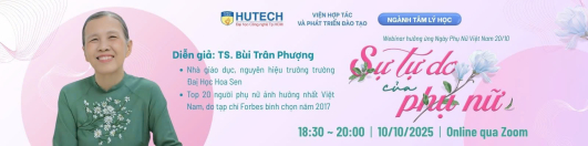 Sự tự do của phụ nữ - Webinar hưởng ứng Ngày Phụ nữ Việt Nam 20/10 Để tìm lời giải, Viện Hợp tác và Phát triển Đào tạo HUTECH hân hạnh mời bạn tham dự một buổi Webinar đặc biệt cùng TS. Bùi Trân Phượng - nhà sử...