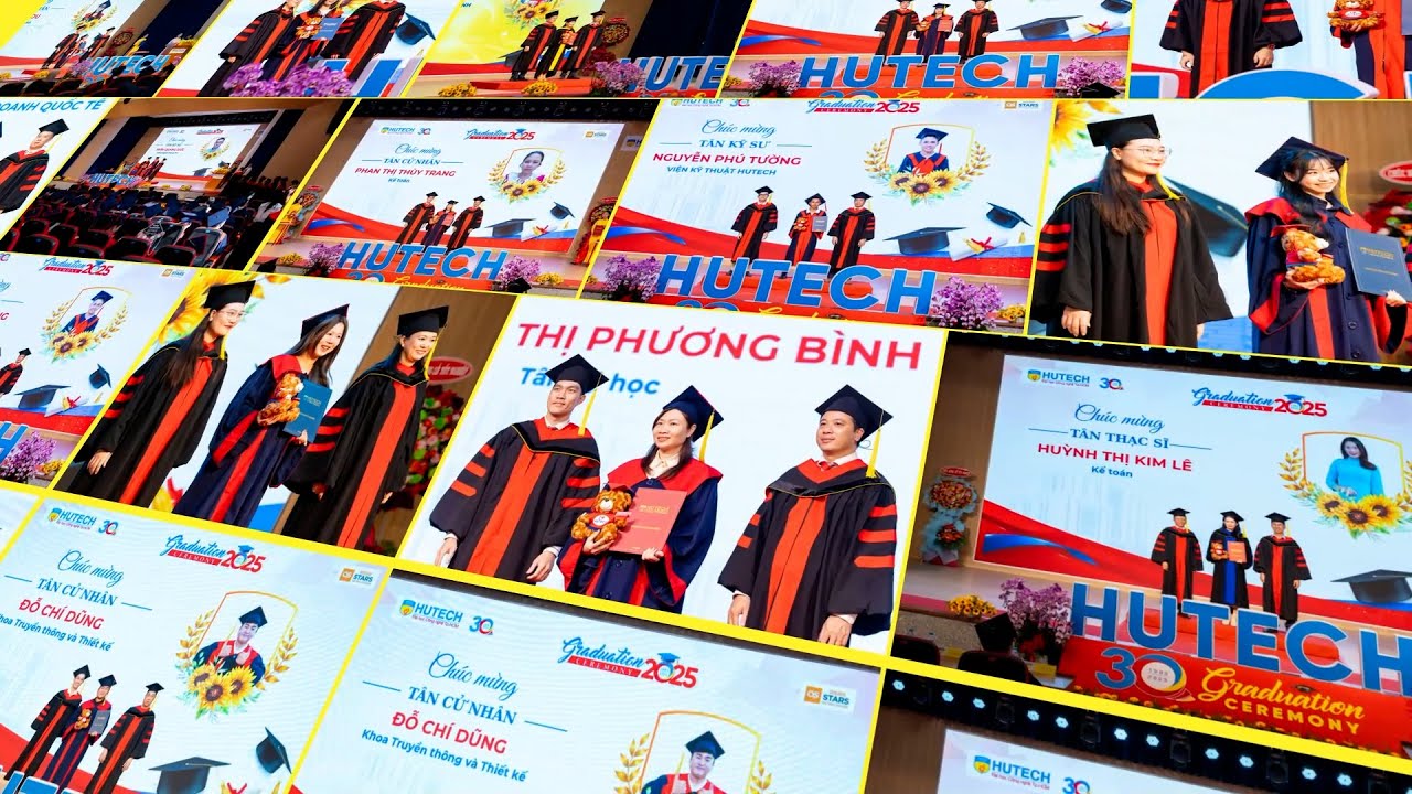On the morning of April 5, new graduates from the Institute of Graduate Studies, Faculty of Information Technology, Faculty of Management Information Systems, Institute of Applied Sciences, and Faculty of Business Administration at Ho Chi Minh City University of Technology (HUTECH) officially graduated — marking a proud and heartfelt moment of gratitude.