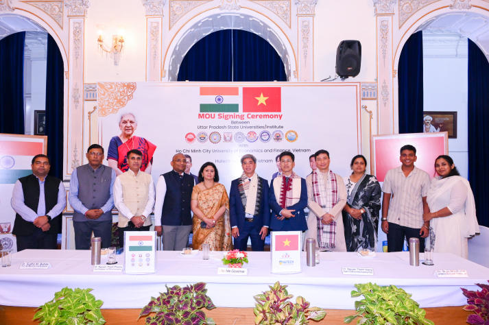The MoU signing ceremony was held with the presence of Mrs. Anandiben Patel, Governor of Uttar Pradesh, along with leaders of the 9 Indian universities. The event marked an important milestone in promoting academic, research, and cultural collaboration between universities in Vietnam and India.