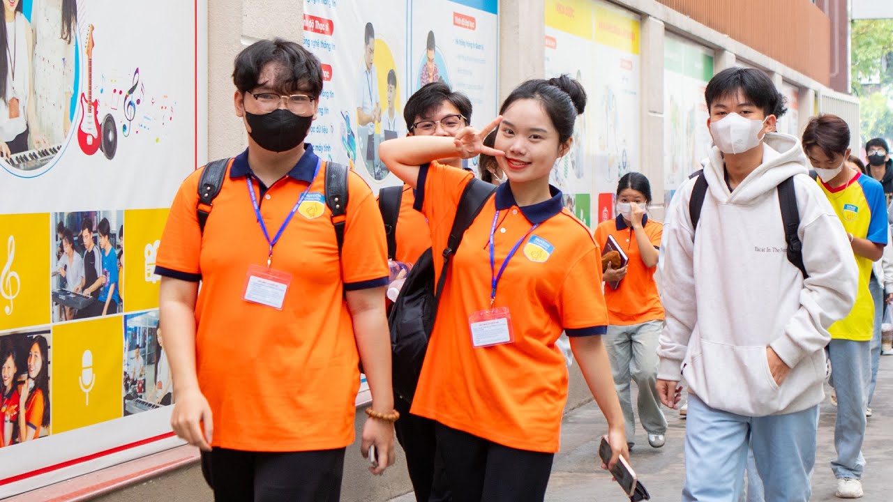 Các bạn sinh viên năng động, cá tính với sắc áo cam đặc trưng đến trường
