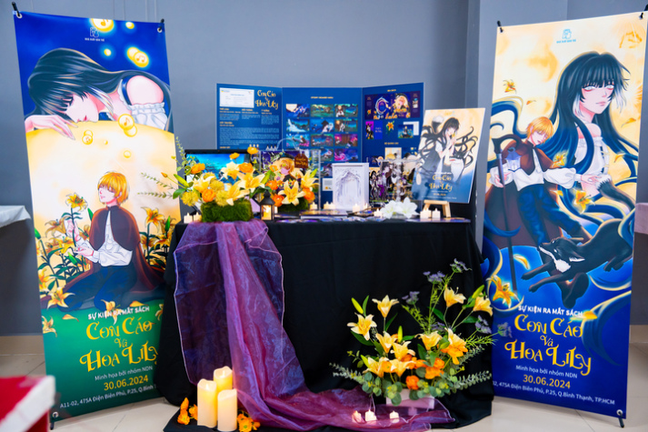 “Em Lũ - Ánh sáng trở về” lại chạm đến khía cạnh cảm xúc cá nhân, khi tái hiện hành trình của một cô bé vùng lũ vượt qua mất mát và tìm lại hy vọng. Tác phẩm sử dụng hình ảnh đèn dầu, thuyền giấy, mặt nước và lá sen như biểu tượng chữa lành. Không gian trưng bày được thiết kế như một mặt hồ nổi, với cuốn sách dựng mở dạng pop-up đặt ở trung tâm. Tranh động và ánh sáng từ Artivive khiến toàn bộ câu chuyện trở nên sống động, như một bộ phim ngắn đầy xúc cảm.