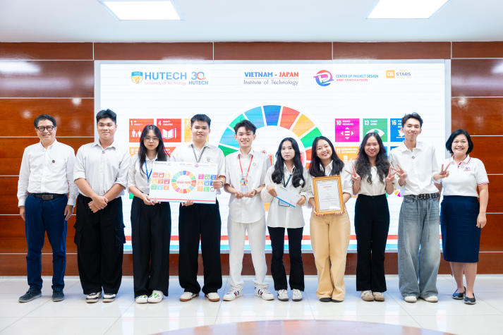 Hướng đến thúc đẩy tinh thần khởi nghiệp gắn với tư duy đổi mới vì các mục tiêu phát triển bền vững của Liên Hợp Quốc (SDGs), ngày 08/8, Trung tâm Thiết kế dự án & Đổi mới sáng tạo thuộc Viện Công nghệ Việt - Nhật (VJIT) Trường Đại học Công nghệ TP.HCM (HUTECH) đã tổ chức phiên công bố poster học phần “Đổi mới sáng tạo và Tư duy khởi nghiệp”.
