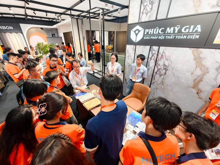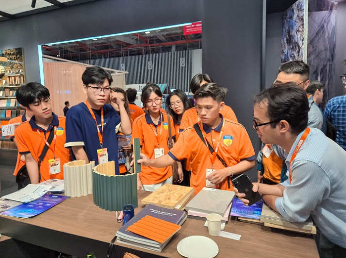 Sinh viên ngành Kiến trúc học tập thực tế tại Triển lãm Nội thất và Xây dựng Việt Nam - VIBE 2025.