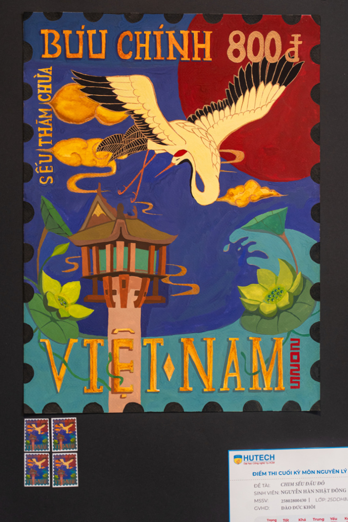 Hàng loạt tác phẩm thiết kế tem độc đáo của sinh viên năm nhất ngành Thiết kế đồ họa, Khoa Truyền thông - Thiết kế Trường Đại học Công nghệ TP.HCM (HUTECH) đã được giới thiệu trong buổi trưng bày “Thiết kế Tem - Sắc màu Thiên nhiên Việt Nam” vào sáng ngày 01/11.