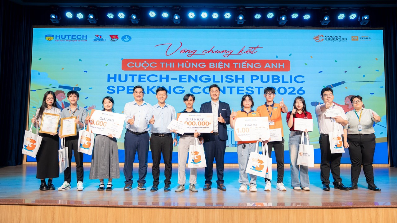Thông qua màn tranh tài của Top 11 sinh viên xuất sắc tại vòng Chung kết Cuộc thi HUTECH - English Public Speaking Contest 2026, sinh viên Trường Đại học Công nghệ TP.HCM (HUTECH) đã cho thấy bản lĩnh làm chủ ngôn ngữ, tư duy phản biện và khát vọng chinh phục những cơ hội nghề nghiệp rộng mở trong tương lai.