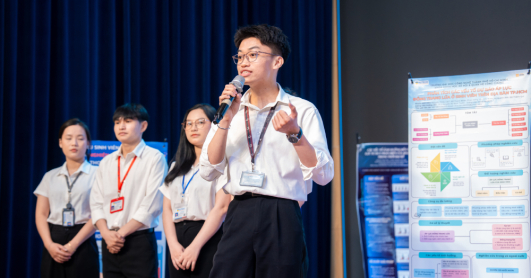 Bên cạnh biểu diễn, sinh viên còn trực tiếp tham gia vào các khâu dàn dựng: “Tụi mình không chỉ hát mà còn phải cùng nhau chuẩn bị hậu cần, xây dựng nội dung trình chiếu led và hoàn thiện tổng thể sân khấu. Gần như toàn bộ những gì đã học đều được vận dụng trong kỳ thi này” - bạn Nguyễn Thị Khánh Ân cho biết.