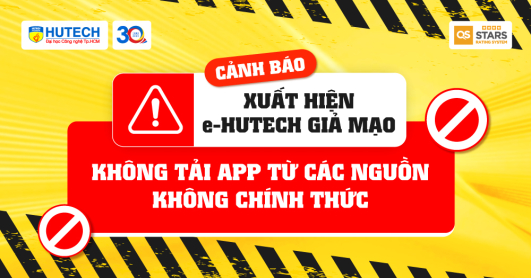 Cảnh báo: Xuất hiện e-HUTECH giả mạo, không tải app từ các nguồn không chính thức HUTECH khuyến cáo toàn thể CB-GV-NV và SV tuyệt đối không tải ứng dụng e-HUTECH từ APKPure, Uptodown, APKCombo hay bất kỳ kho ứng dụng không chính...