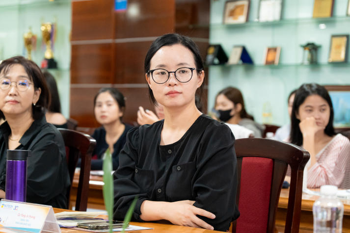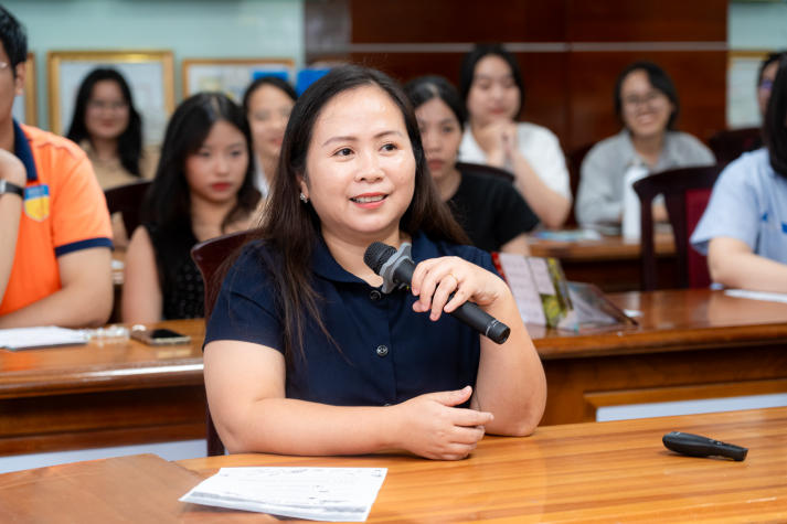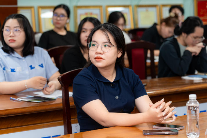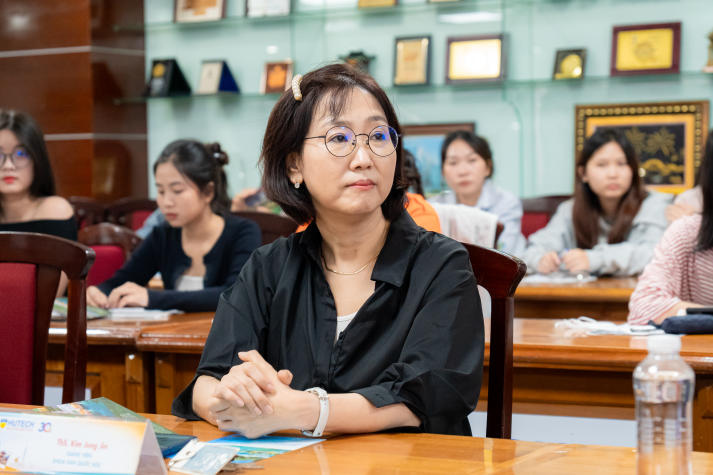 Bên cạnh đó, chị Khánh Huy cũng chia sẻ về cơ hội phát triển nghề nghiệp dành cho sinh viên Ngôn ngữ Hàn tại các vị trí “bộ mặt” của ngành du lịch như lễ tân, chăm sóc khách hàng, hay khối văn phòng - nơi đòi hỏi khả năng giao tiếp và tác phong chuyên nghiệp. Chị đồng thời nhấn mạnh nhóm kỹ năng thiết yếu mà sinh viên cần trang bị gồm: năng lực ngoại ngữ, hiểu biết văn hoá Hàn Quốc, kiến thức du lịch, quản lý cảm xúc, kỹ năng giao tiếp và trình bày vấn đề, sắp xếp và quản lý công việc, kỹ năng làm việc nhóm.
