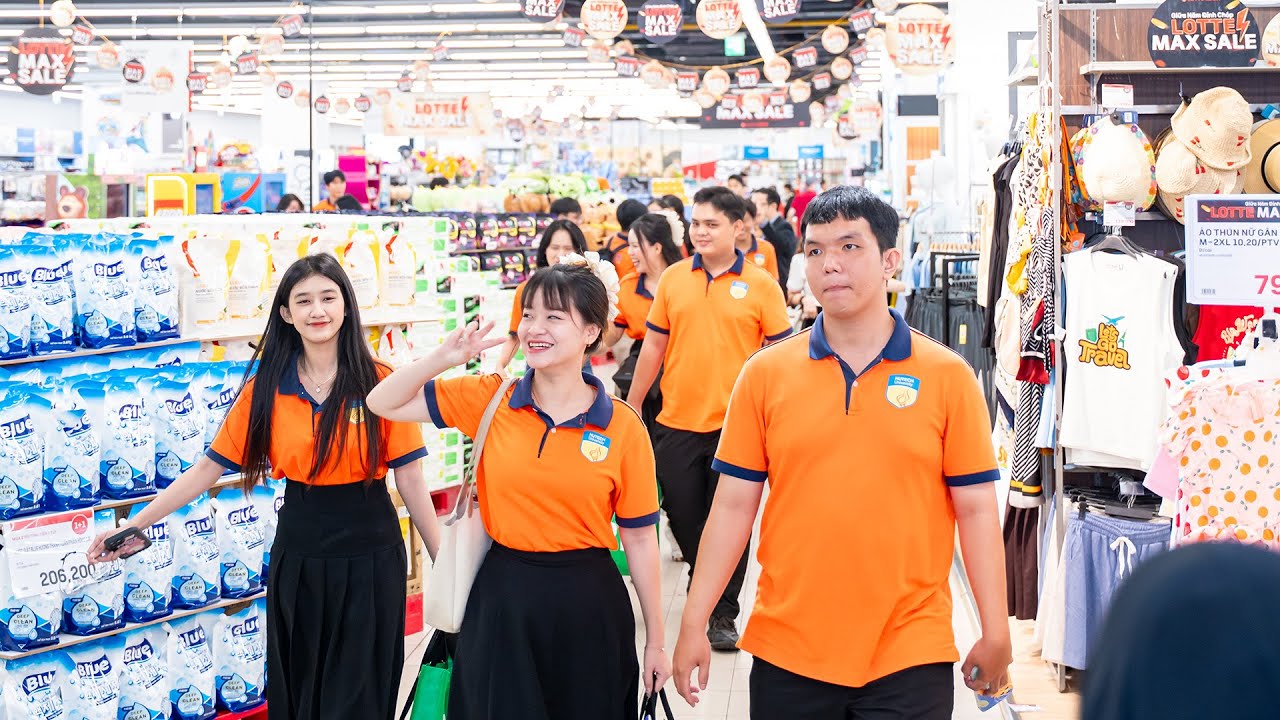 Tại khu vực thực phẩm tươi sống và nhập khẩu, các bạn được giải thích cách Lotte Mart lựa chọn nguồn hàng chất lượng, đảm bảo tiêu chuẩn an toàn vệ sinh thực phẩm và đáp ứng thị hiếu người tiêu dùng. Nhiều bạn tỏ ra thích thú khi được trực tiếp tìm hiểu chiến lược bán hàng và chương trình khuyến mãi lớn như "Lotte Max Sale" - hoạt động thu hút khách hàng trong dịp cao điểm mua sắm.