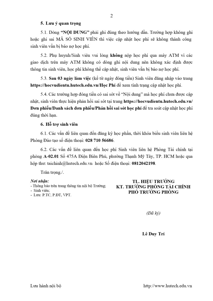 Thông báo đóng học phí Học kỳ II Năm học 2025-2026 Khoá 2024 về trước