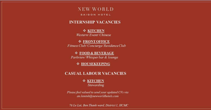 THÔNG TIN TUYỂN DỤNG KHÁCH SẠN NEW WORLD SAIGON