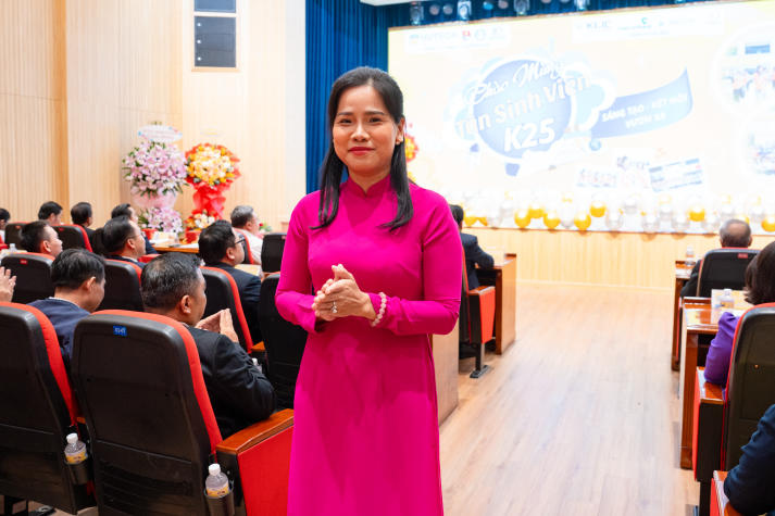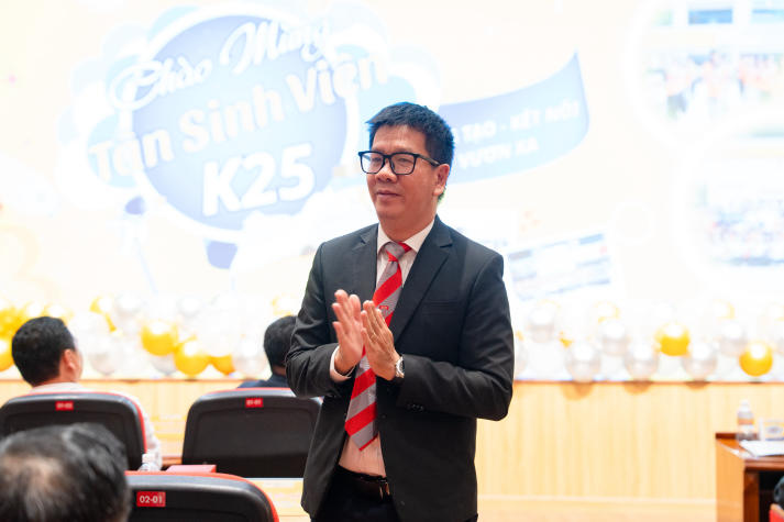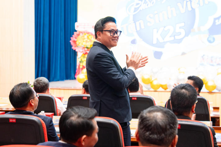 Tại buổi lễ, TS. Huỳnh Ngọc Anh - Phó Hiệu trưởng Nhà trường gửi gắm kỳ vọng đến các tân sinh viên K25 - thế hệ của công nghệ và sự sáng tạo, sẽ tiếp nối truyền thống tốt đẹp về thái độ, kỷ luật của các thế hệ đi trước và chủ động trang bị thêm kỹ năng công nghệ, đặc biệt là AI, để trở thành công cụ đắc lực trong học tập và công việc tương lai.