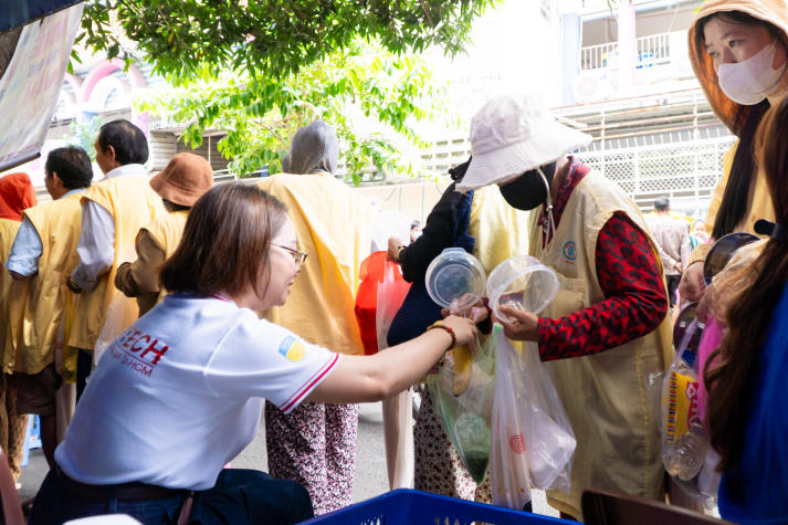 Chương trình thiện nguyện “Cơm cùng trao - Lòng cùng ấm” do liên quân ba Khoa Nhật - Hàn - Trung thực hiện