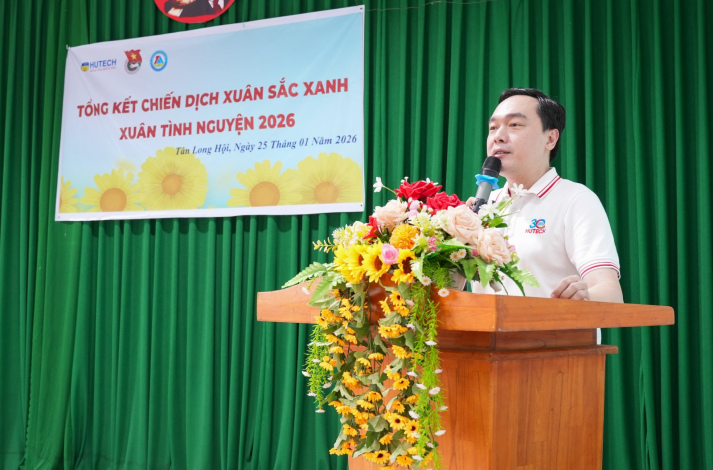 Khép lại chương trình là lễ tổng kết chiến dịch do UBND xã Tân Long Hội phối hợp tổ chức, đồng thời trao tặng giấy khen cho các chiến sĩ tình nguyện nhằm ghi nhận những đóng góp tích cực của tuổi trẻ HUTECH. Không chỉ mang lại những giá trị vật chất thiết thực, “Xuân sắc xanh 2026" còn góp phần gắn kết tình cảm giữa sinh viên và cộng đồng, lan tỏa hình ảnh sinh viên HUTECH năng động, trách nhiệm và giàu lòng nhân ái trong lòng người dân địa phương.