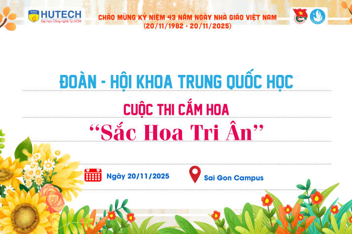 2 Cuộc thi cắm hoa nghệ thuật chào mừng Ngày Nhà giáo Việt Nam 20/11, chủ đề “Sắc hoa tri ân” do Khoa Trung Quốc học tổ chức. Ngày 20/11 tại Sai Gon Campus.