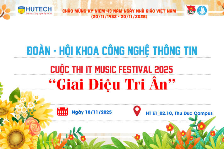 7 Cuộc thi IT Music Festival 2025”, chủ đề “Giai điệu tri ân” Khoa Công nghệ thông tin tổ chức. Từ ngày 28/10 đến ngày 18/11 tại E1-02.10, Thu Duc Campus.