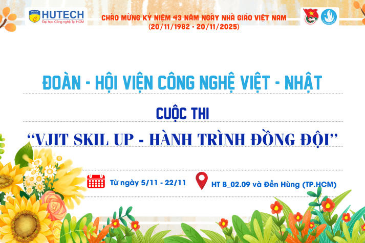 5 Chương trình “VJIT Skill up - Hành trình đồng đội” do Viện Công nghệ Việt - Nhật tổ chức. Diễn ra từ ngày 05/11 đến ngày 22/11 tại B-02.09, Sai Gon Campus và Đền tưởng niệm các vua Hùng TP.HCM.