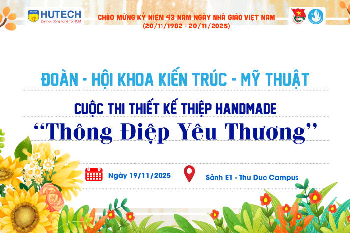 6 Cuộc thi làm thiệp Handmade, chủ đề “Thông điệp yêu thương” lần thứ 3 năm học 2025 - 2026 do Khoa Kiến trúc - Mỹ thuật tổ chức. Ngày 19/11 tại Thu Duc Campus.