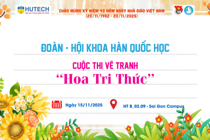 3 Cuộc thi vẽ tranh chào mừng ngày Nhà giáo Việt Nam 20/11, chủ đề “Hoa tri thức” do Khoa Hàn Quốc học tổ chức. Ngày 15/11 tại Sai Gon Campus.