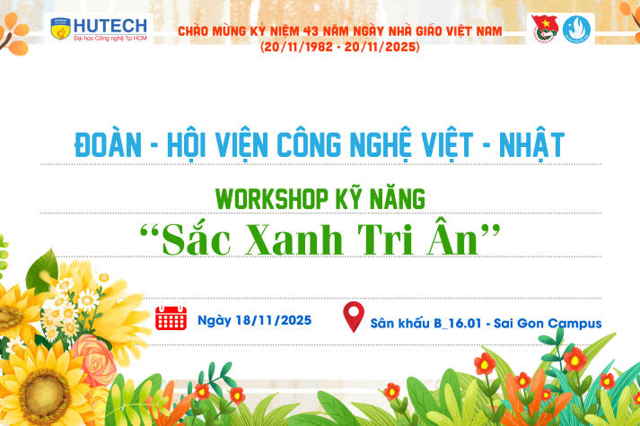4 Chương trình Workshop Kỹ năng “Sắc xanh tri ân” do Viện Công nghệ Việt - Nhật tổ chức. Ngày 18/11/2025 tại Sân khấu B-16.01, Sai Gon Campus.