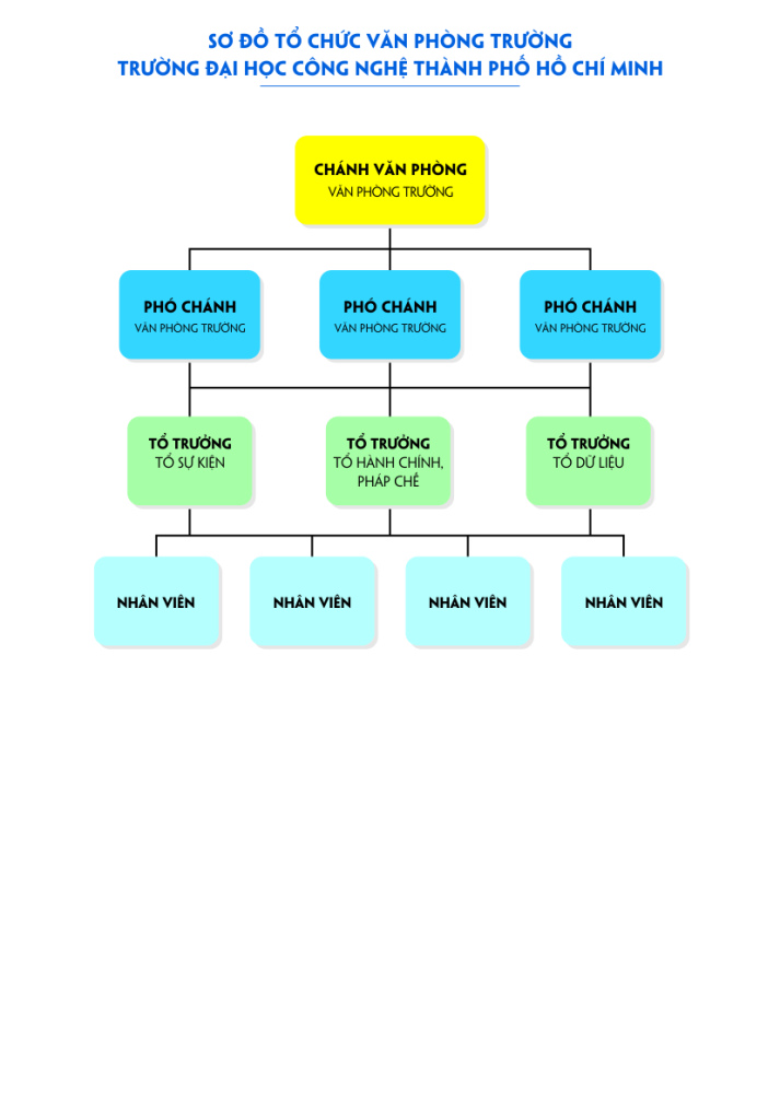Văn phòng Trường là đơn vị thuộc Trường Đại học Công nghệ TP. Hồ Chí Minh có chức năng tham mưu cho Ban Giám hiệu trong công tác hành chính, pháp chế; dữ liệu, báo cáo; quản lý phôi văn bằng, chứng...