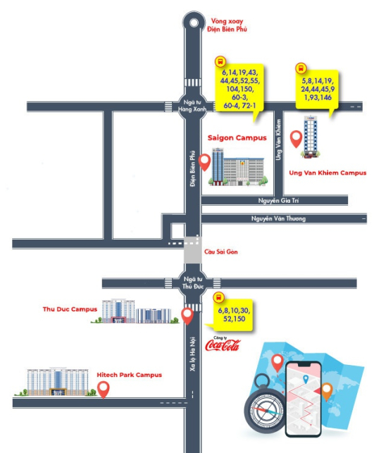 Ung Van Khiem Campus: 31/36 Ung Văn Khiêm, phường Thạnh Mỹ Tây, TP.HCM