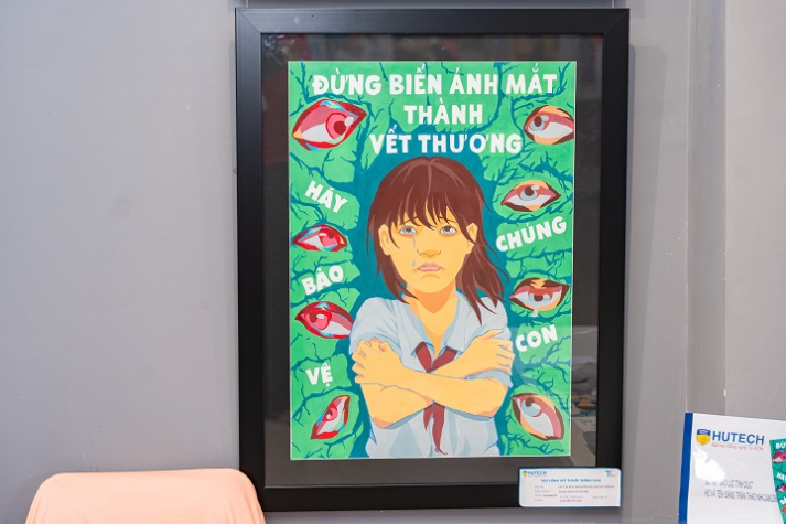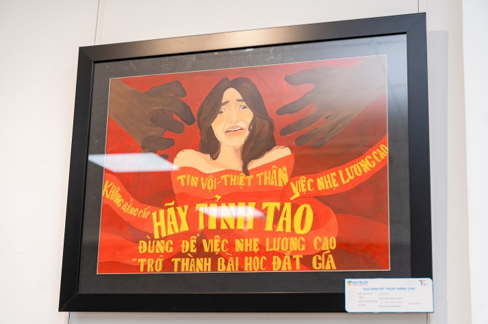 Với đề bài hướng đến các giá trị văn hóa truyền thống, vấn đề xã hội đương đại, buổi trưng bày “Thông điệp từ nghệ thuật tạo hình” của sinh viên năm 2 ngành Thiết kế đồ họa, Khoa Truyền thông - Thiết kế Trường Đại học Công nghệ TP.HCM (HUTECH) đã giới thiệu nhiều tác phẩm tranh cổ động trực quan, giàu tính tuyên truyền và chạm đến cảm xúc người xem.