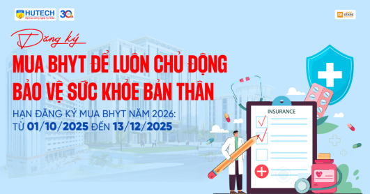 Sinh viên HUTECH đăng ký mua Bảo hiểm y tế năm học 2025-2026 từ 01/10 đến hết ngày 13/12 Sinh viên HUTECH từ khóa 2024 trở về trước và tân sinh viên chưa đăng ký mua Bảo hiểm y tế (BHYT) tại thời điểm làm thủ tục nhập học sẽ đăng ký mua...