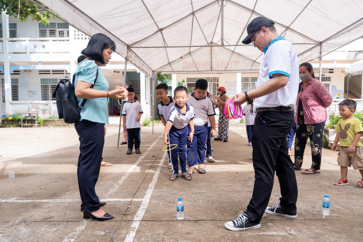 Các em nhỏ hào hứng tham gia các hoạt động do sinh viên Khoa Dược tổ chức
