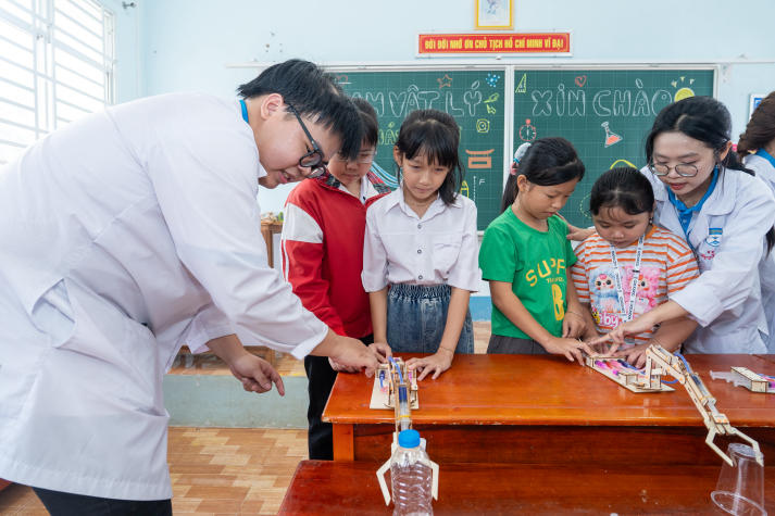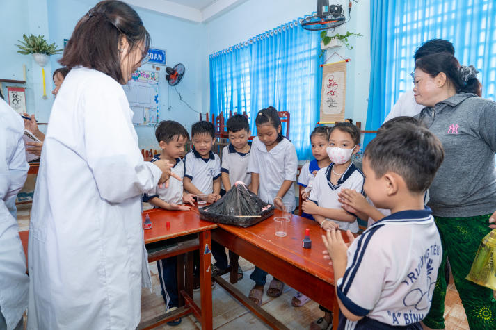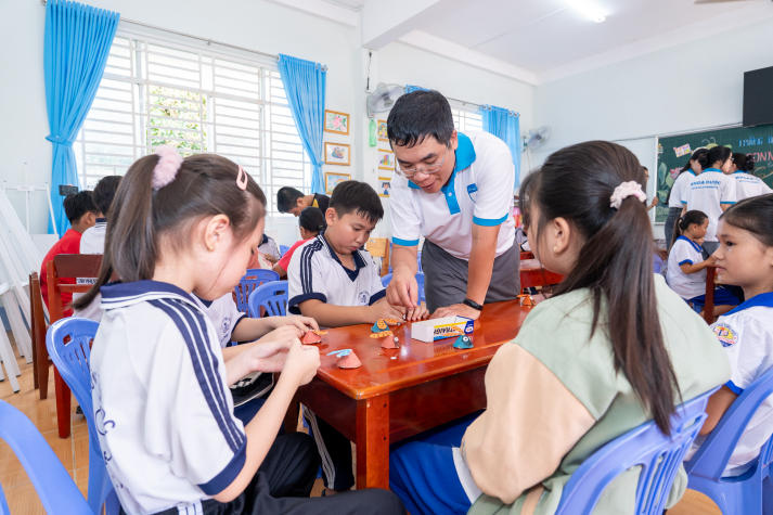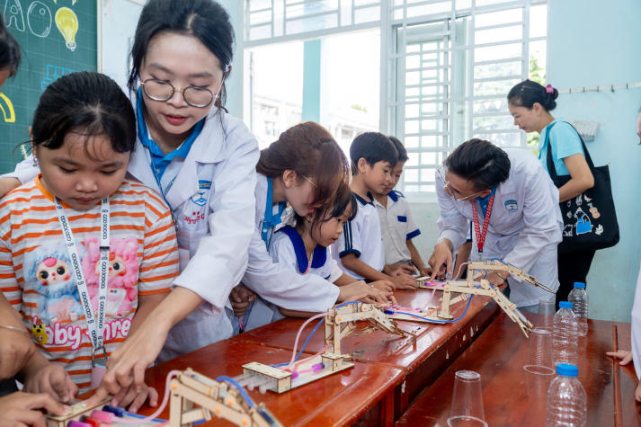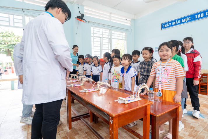 Điểm nhấn của Connect 7 không đơn thuần là những món quà vật chất, mà còn đến từ chuỗi hoạt động trải nghiệm hấp dẫn dành cho các em. Với bảy trạm khoa học và vui chơi được thiết kế sáng tạo, học sinh đã được tham gia nhiều hoạt động thú vị như: thí nghiệm núi lửa, quan sát mẫu sinh học qua kính hiển vi, trải nghiệm tay máy kỹ sư vật lý, học cách đánh răng đúng cách, tái chế sáng tạo, thử sức cùng các trò chơi vận động và nhận quà lưu niệm tại trạm quà tặng. Những hoạt động này vừa mang lại niềm vui vừa giúp các em tiếp thu kiến thức bổ ích, khơi gợi sự hứng thú với học tập và khám phá thế giới xung quanh.