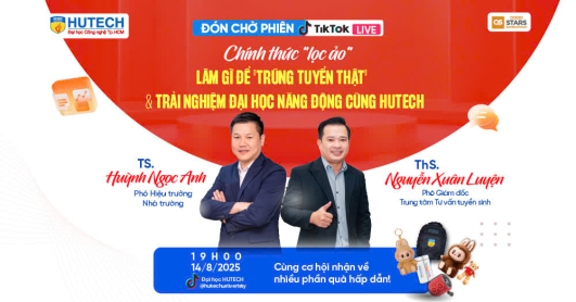 [HUTECH TIKTOK LIVE 2025] Cơ hội để thí sinh “giải mã” quy trình lọc ảo tuyển sinh 2025 vào 14/8 tới Ngày 14/8 tới, HUTECH sẽ tổ chức phiên livestream HUTECH TikTok Live đồng hành cùng thí sinh trong giai đoạn lọc ảo của mùa xét tuyển đại học 2025,...
