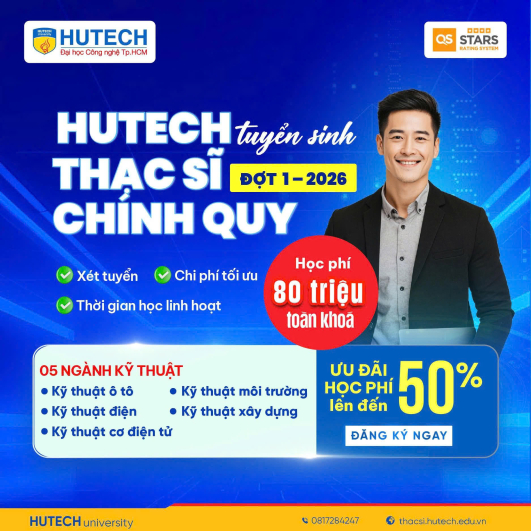 - Trang phục: Áo Viện Kỹ thuật HUTECH, quần dài sẫm màu, đeo thẻ sinh viên.