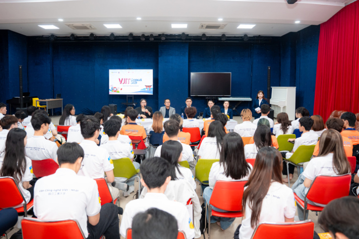 Ông Okabe Mitsutoshi - Trưởng đại diện Tổ chức Xúc tiến thương mại Nhật Bản (JETRO) tại TP.HCM cho biết, nhu cầu về nguồn nhân lực chất lượng cao tại doanh nghiệp Nhật Bản đang ngày càng tăng. Đồng thời, ông cũng bày tỏ kỳ vọng: "Tôi hy vọng rằng các bạn sinh viên sẽ học tập thật tốt chuyên ngành của mình cùng với tiếng Nhật, và phát triển thành những nhân tài có thể làm cầu nối giữa Việt Nam và Nhật Bản. Tôi cũng xin gửi lời chúc mối quan hệ hợp tác giữa VJIT và các cơ quan, doanh nghiệp phía Nhật Bản ngày càng bền chặt”.